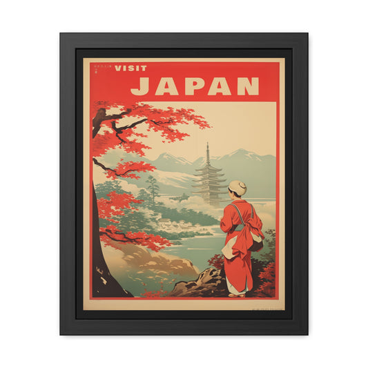 Vintage Japan Travel Poster - 'Visit Japan' Scenic Pagoda View Framed Posters