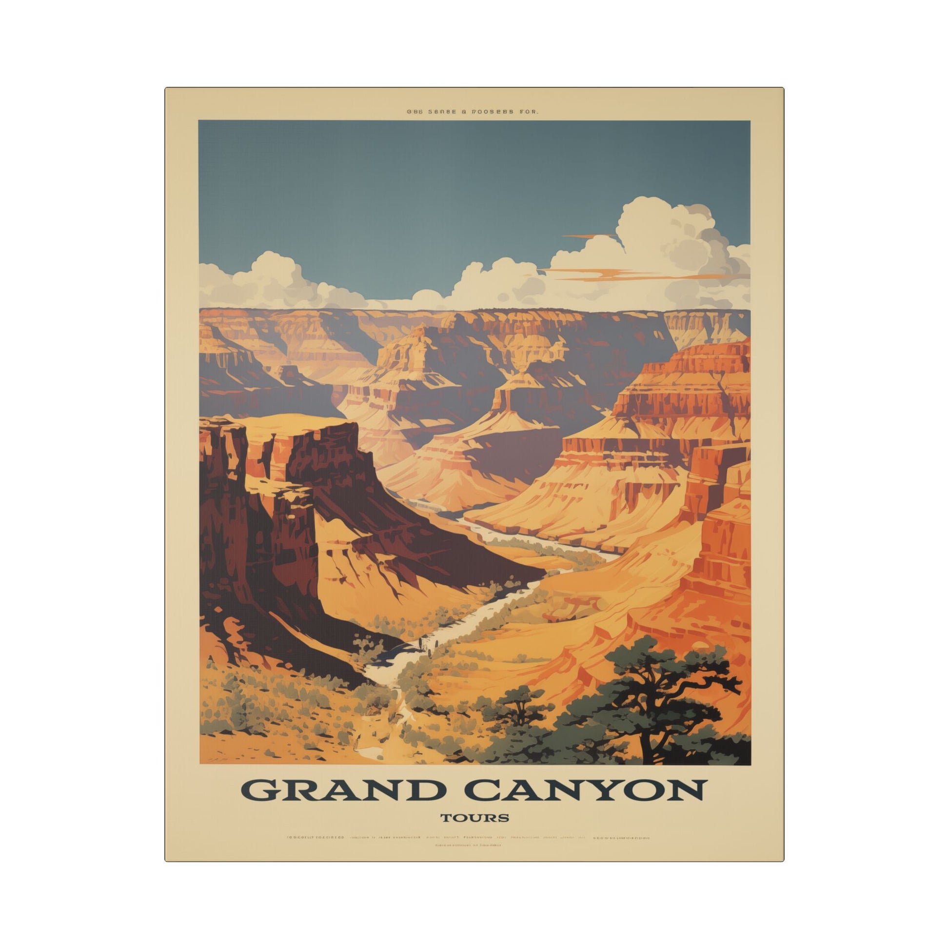 Journey into the heart of one of the world's most stunning natural wonders with this vintage travel canvas of the Grand Canyon. The artwork captures the dramatic cliffs, winding river, and vivid colors of the canyon landscape, evoking a sense of adventure and timeless beauty. Perfect for fans of retro travel art, this print brings the awe-inspiring majesty of the Grand Canyon into your home or office.