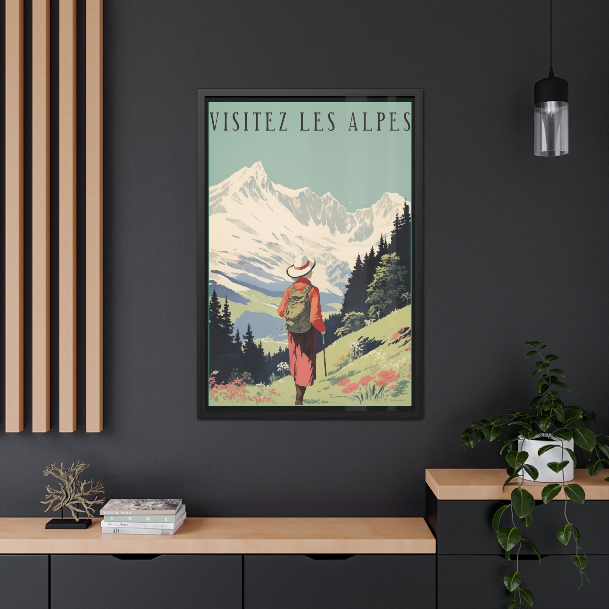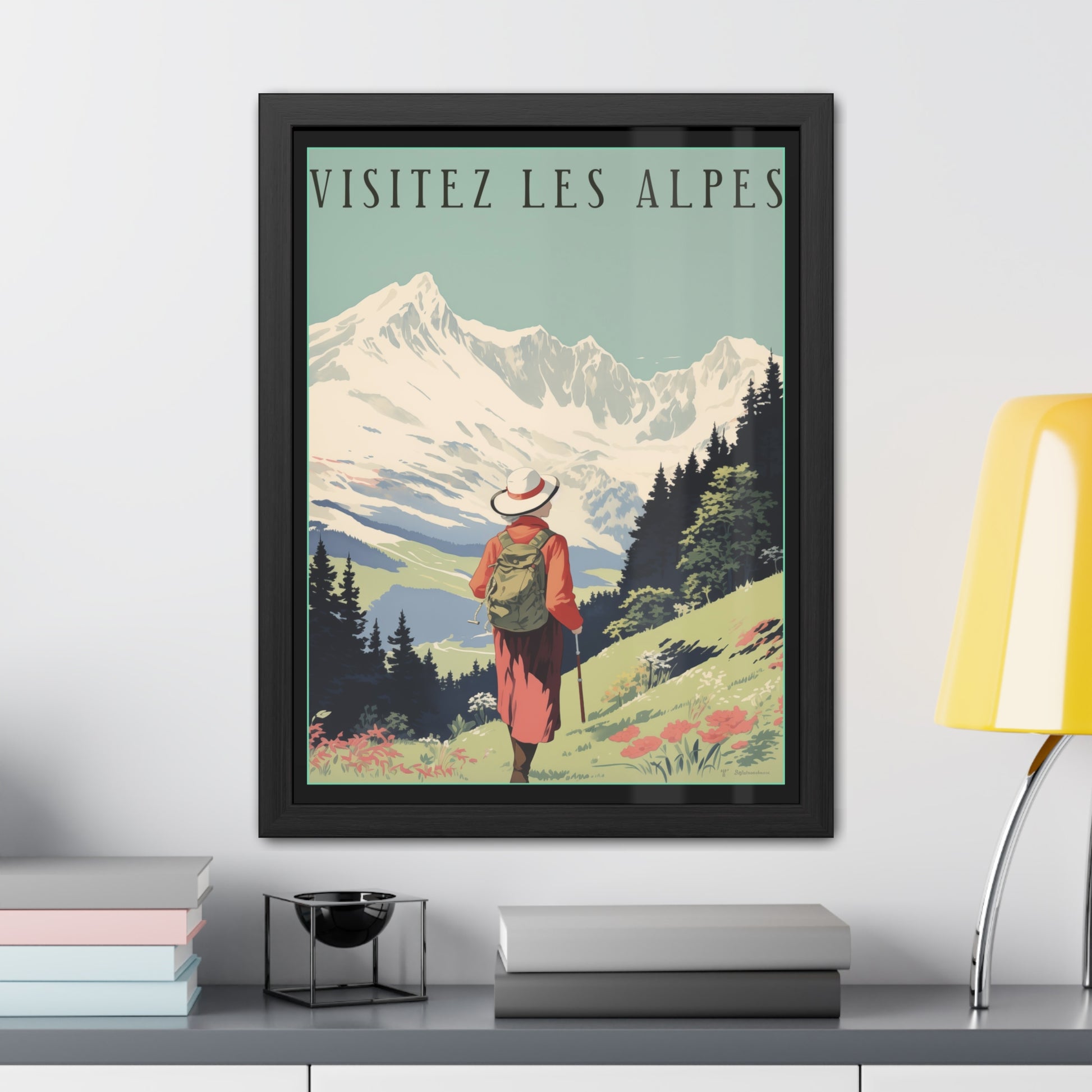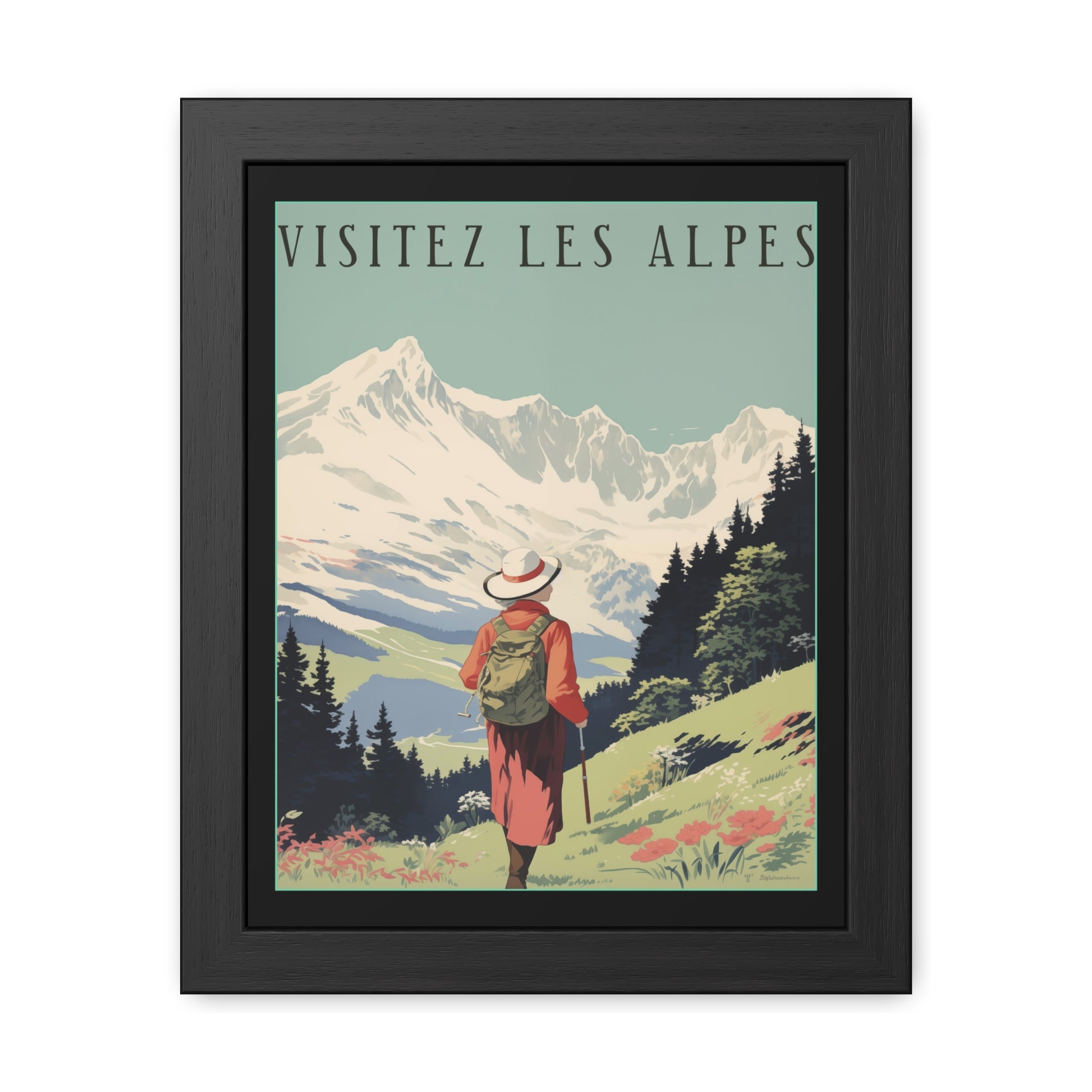 Vintage Alps Travel Poster - 'Visitez Les Alpes' (Visit the Alps) Scenic Artwork Framed Posters