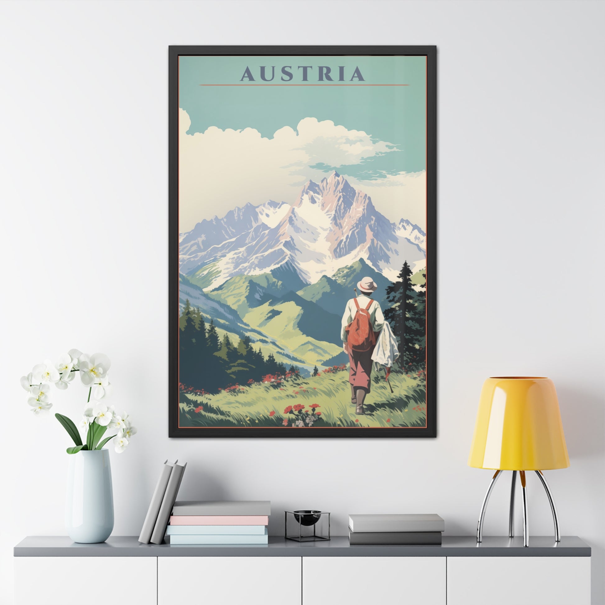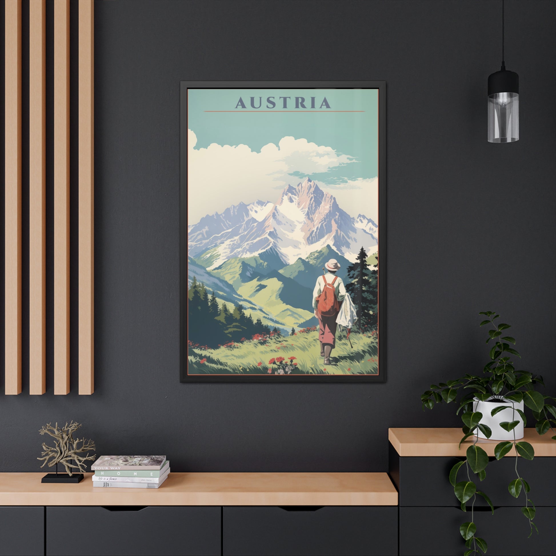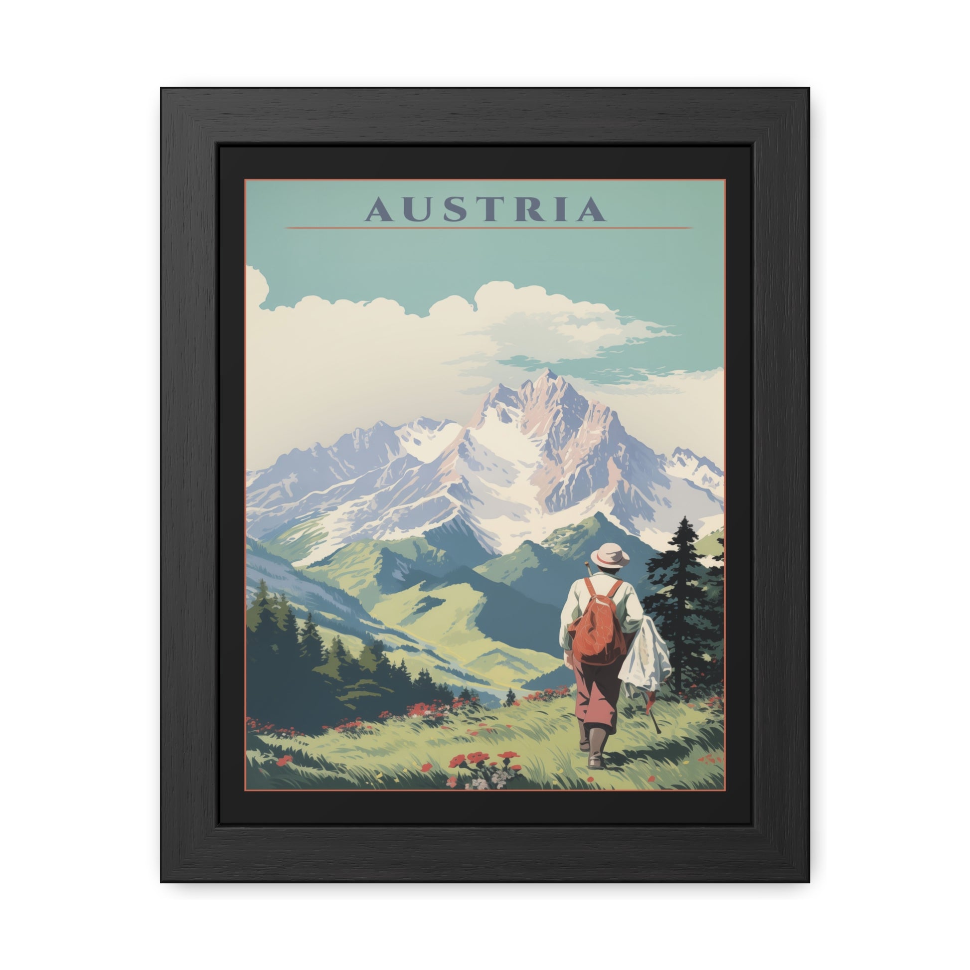 Vintage Austria Travel Poster - Alpine Hiking Scene Framed Posters