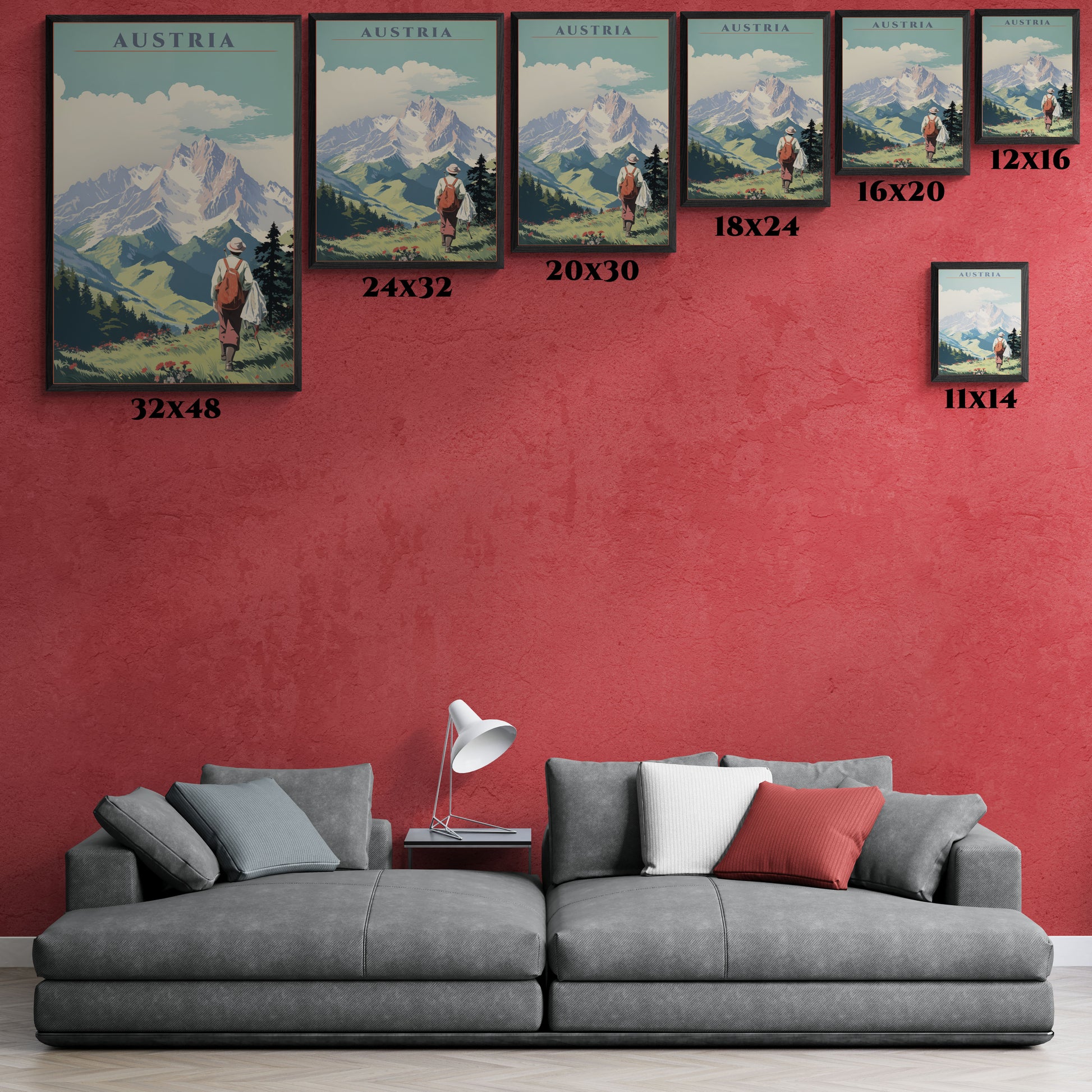 This artwork is ideal for those who love exploring the outdoors or wish to bring a touch of Austrian charm into their space. Whether displayed as a centerpiece or gifted to someone special, this print captures the spirit of adventure and the natural beauty of the Alps.