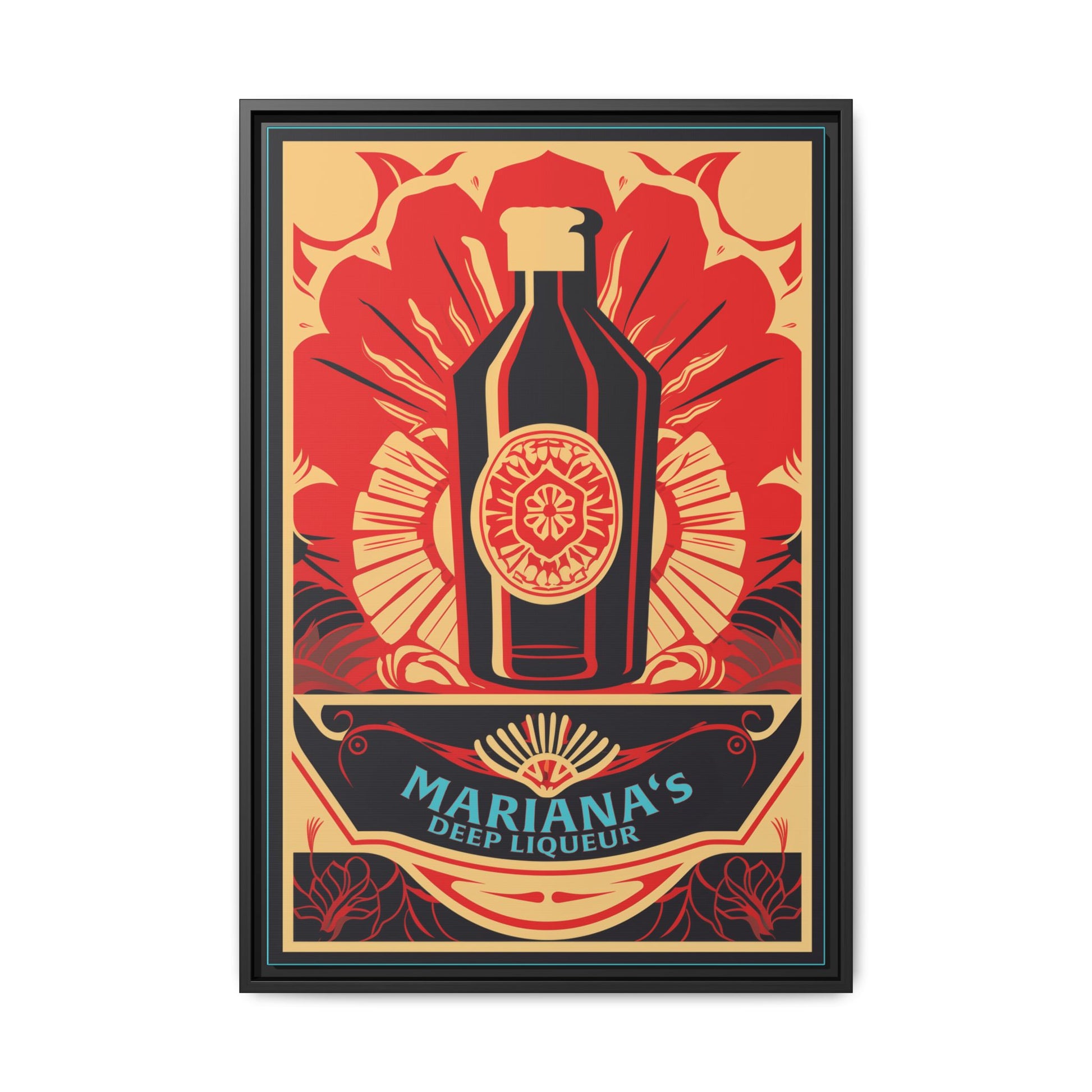 "Vintage Mariana's Deep Liqueur Bottle Poster - Matte Canvas Wall Art with Black Frame" Matte Canvas, Black Frame