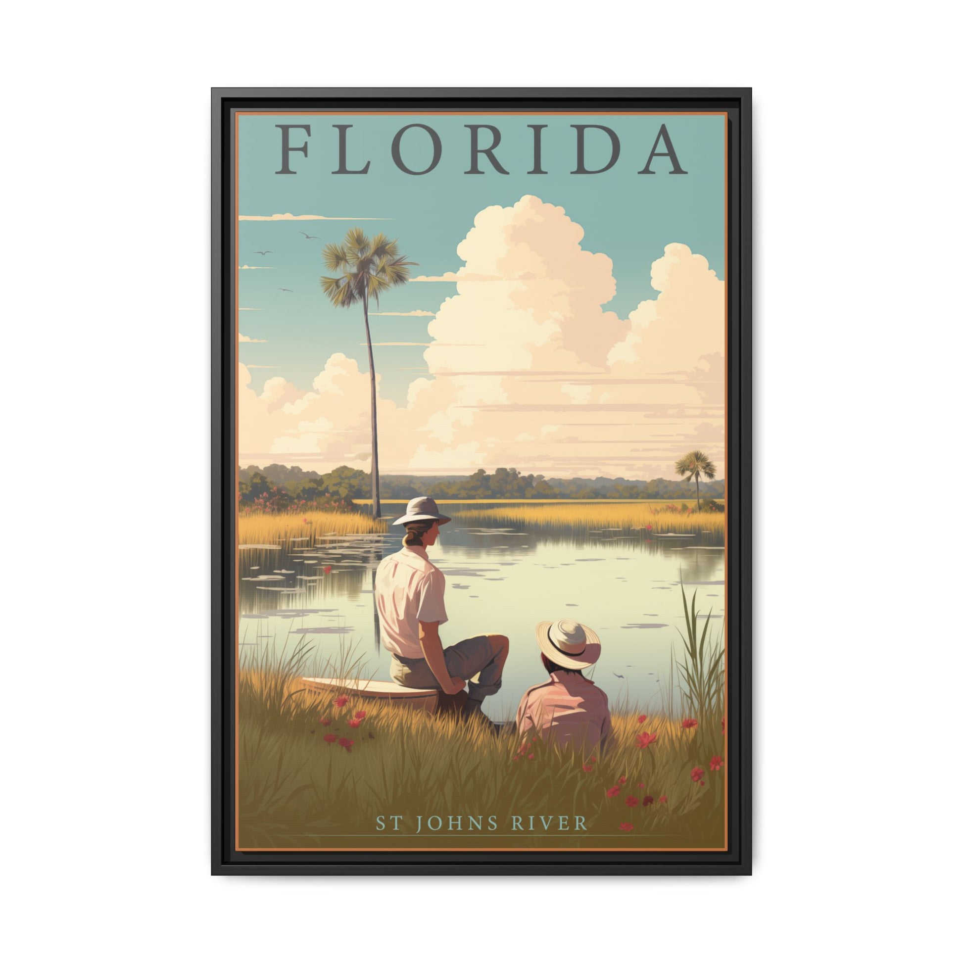 "Vintage Florida Scenic Poster - St. Johns River Matte Canvas Wall Art with Black Frame" Matte Canvas, Black Frame