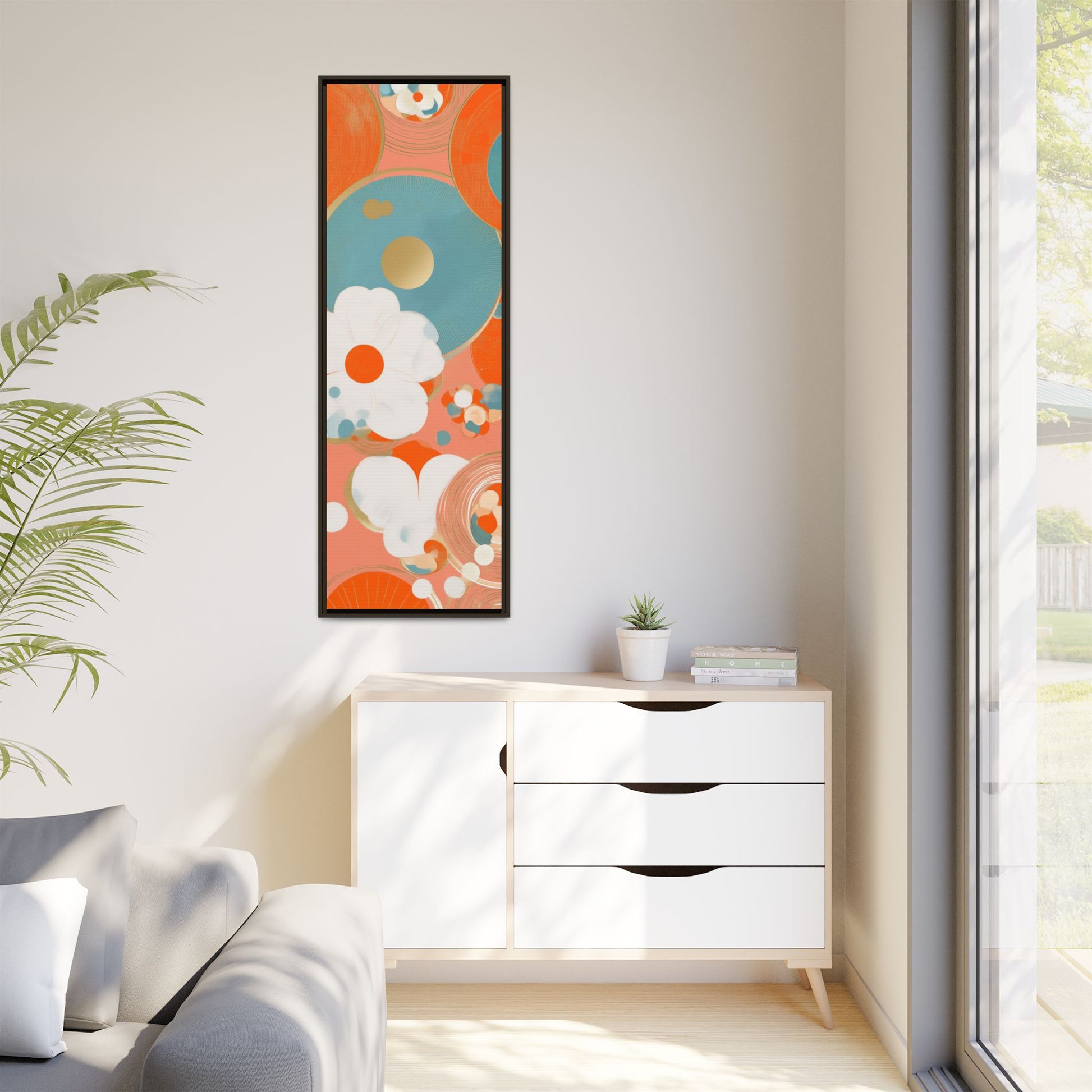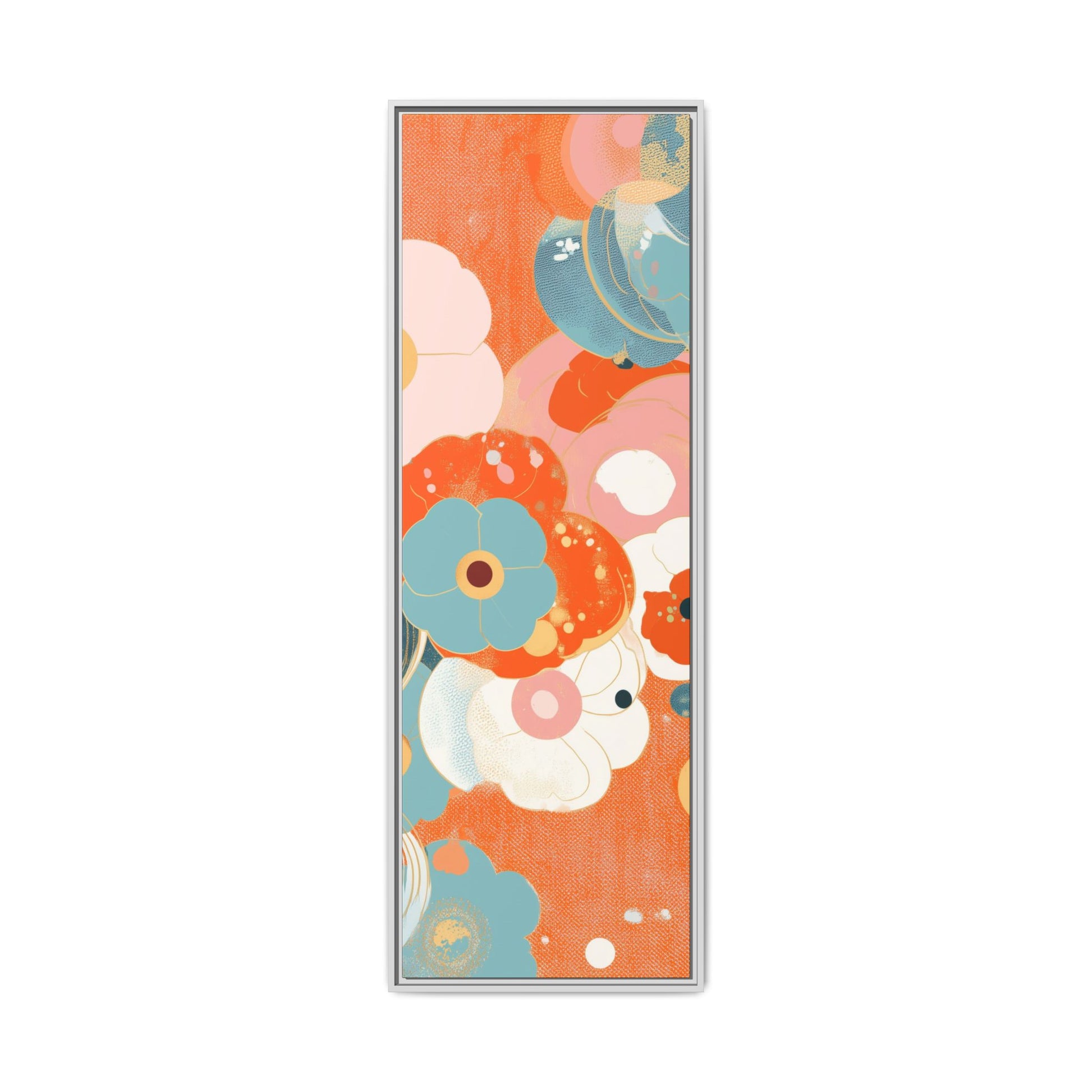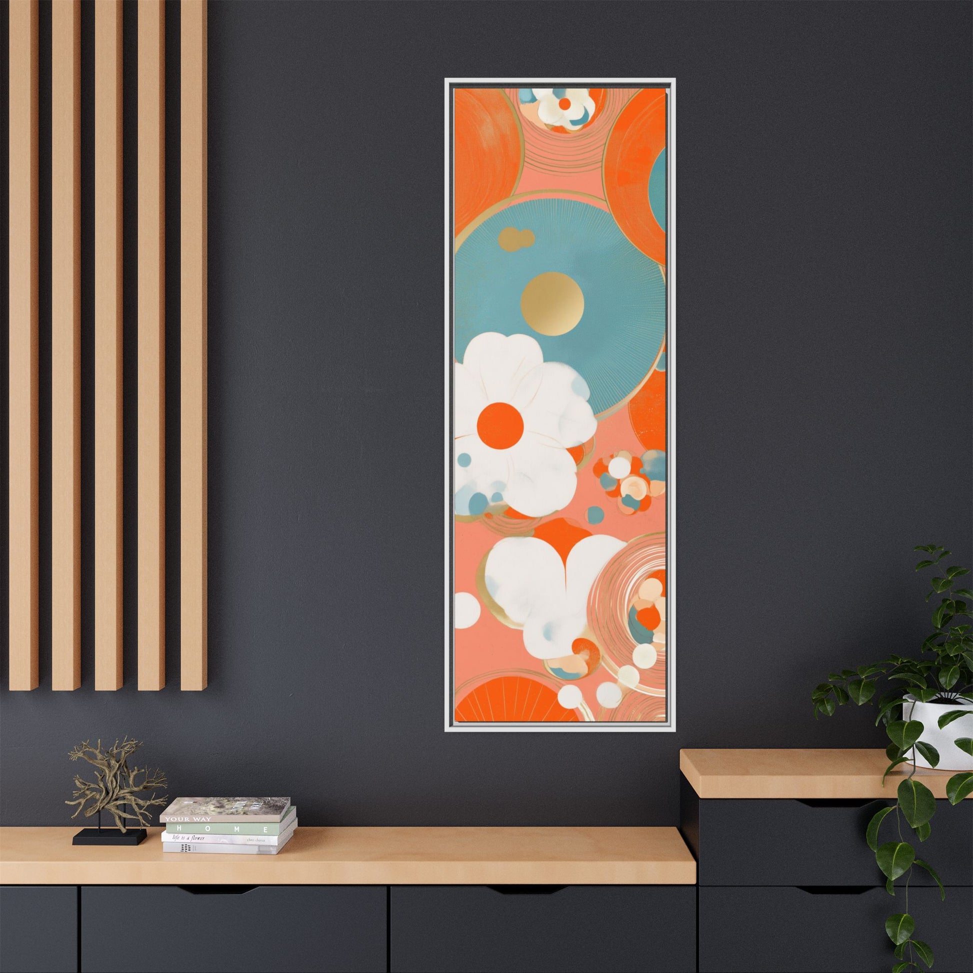 Bring bold retro energy into your space with this 20×60 Mid-Century Modern Floral Abstract Canvas Set, featuring three long-format statement pieces designed to brighten any room with playful color and flowing organic shapes. Each artwork celebrates vintage 1960s–70s floral design with swirling textures, soft gradients, and punchy orange, teal, and cream tones.